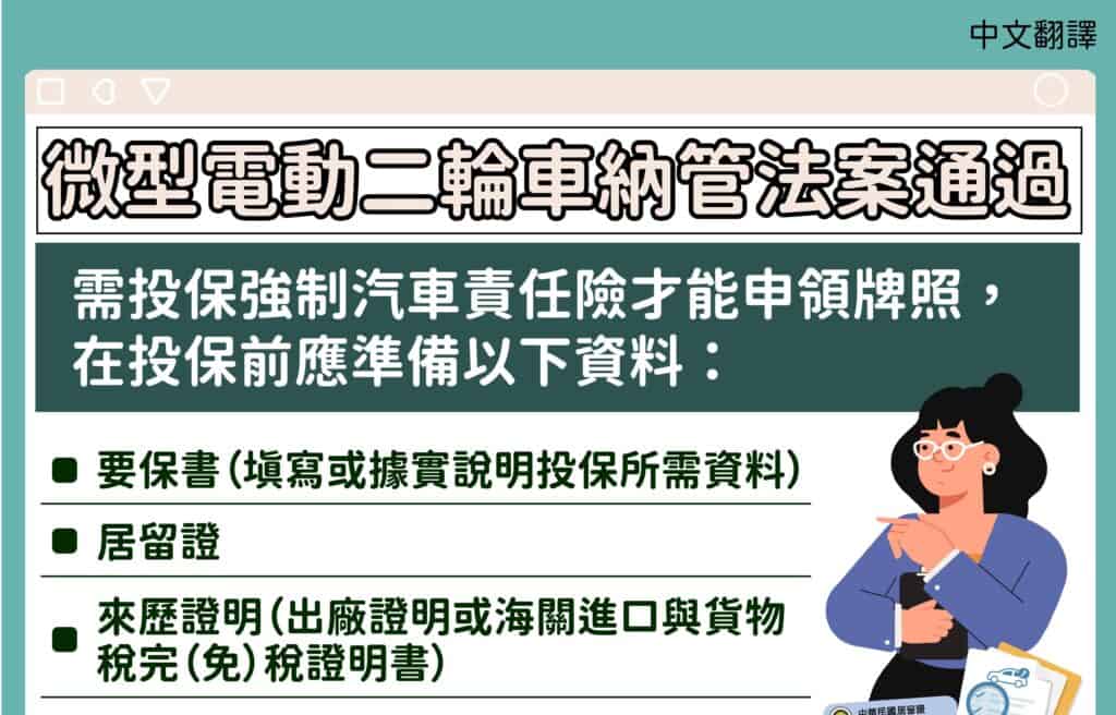 移工宣導|微型電動二輪車 如何投保強制汽車責任險-多國語言