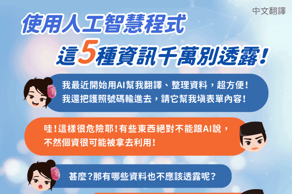 移工宣導|使用人工智慧程式,這5種資訊千萬別透露!-多國語