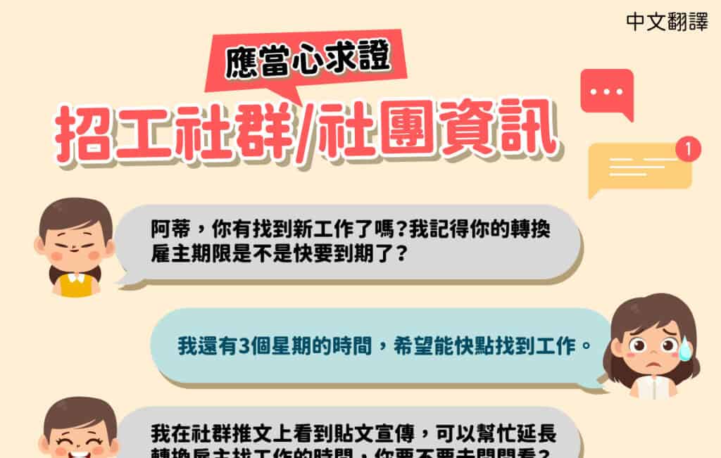 移工宣導|招工社群/社團資訊應當心求證-多國語