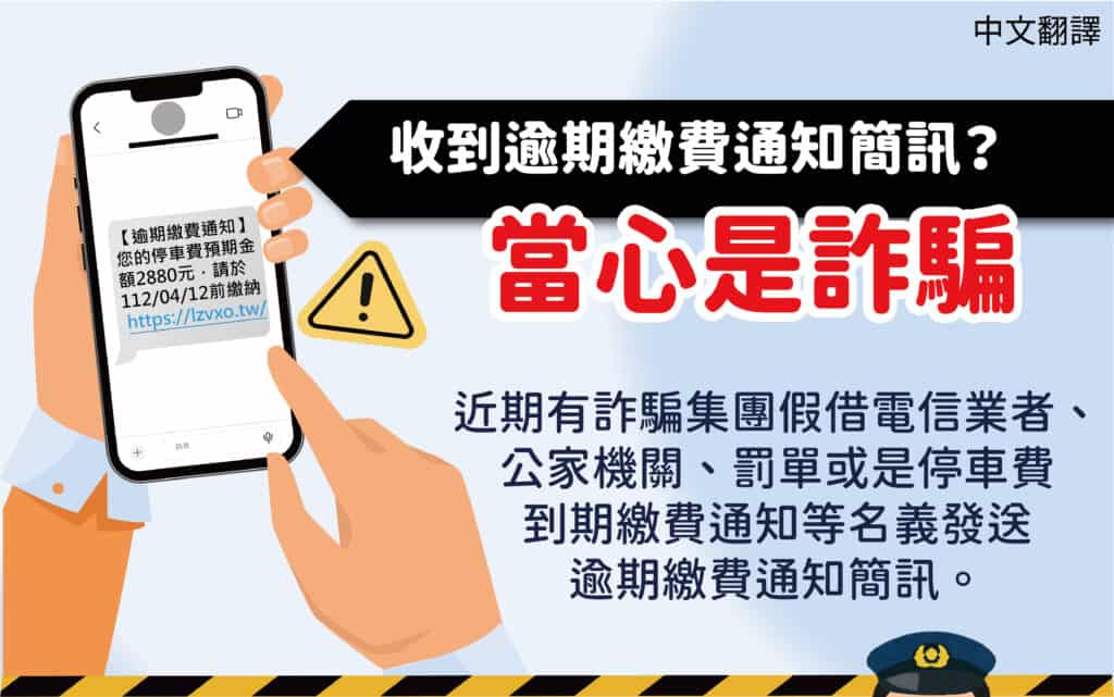 收到逾期繳費通知簡訊,當心是詐騙-多國語