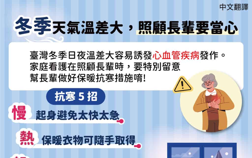 移工宣導|冬季天氣溫差大,照顧長輩要當心-多國語