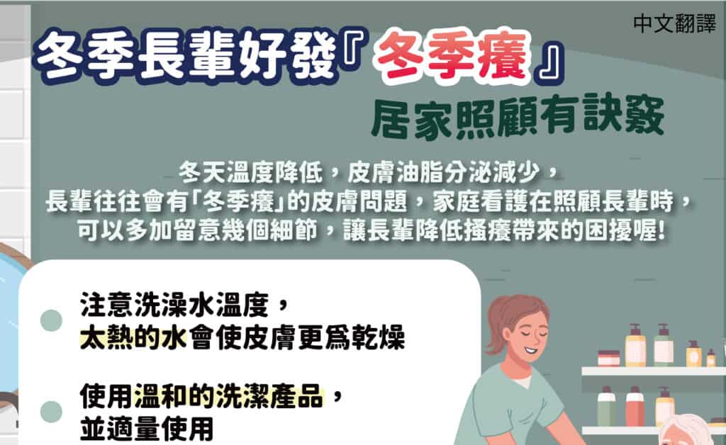 移工宣導|冬季長輩好發『 冬季癢 』居家照顧有訣竅-多國語