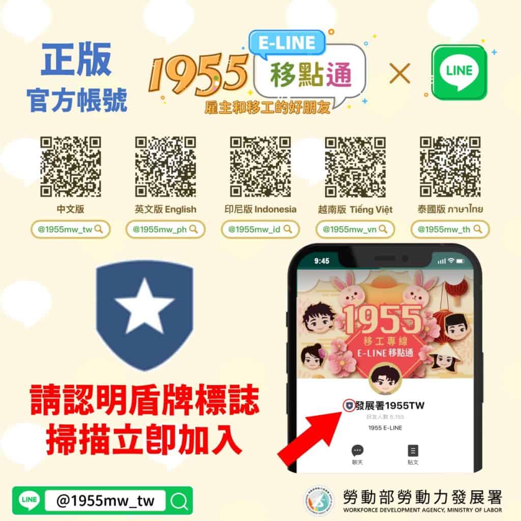 移工宣導|小心!LINE@移點通圖像遭詐騙冒用 提醒移工三步驟:冷靜、查證、報警或打1955-多國語