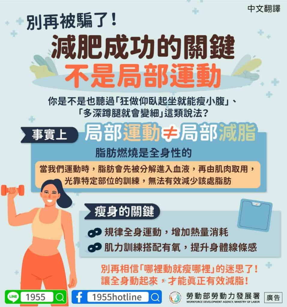 移工宣導|別再被騙了!減肥成功的關鍵不是局部運動(健康)-多國語